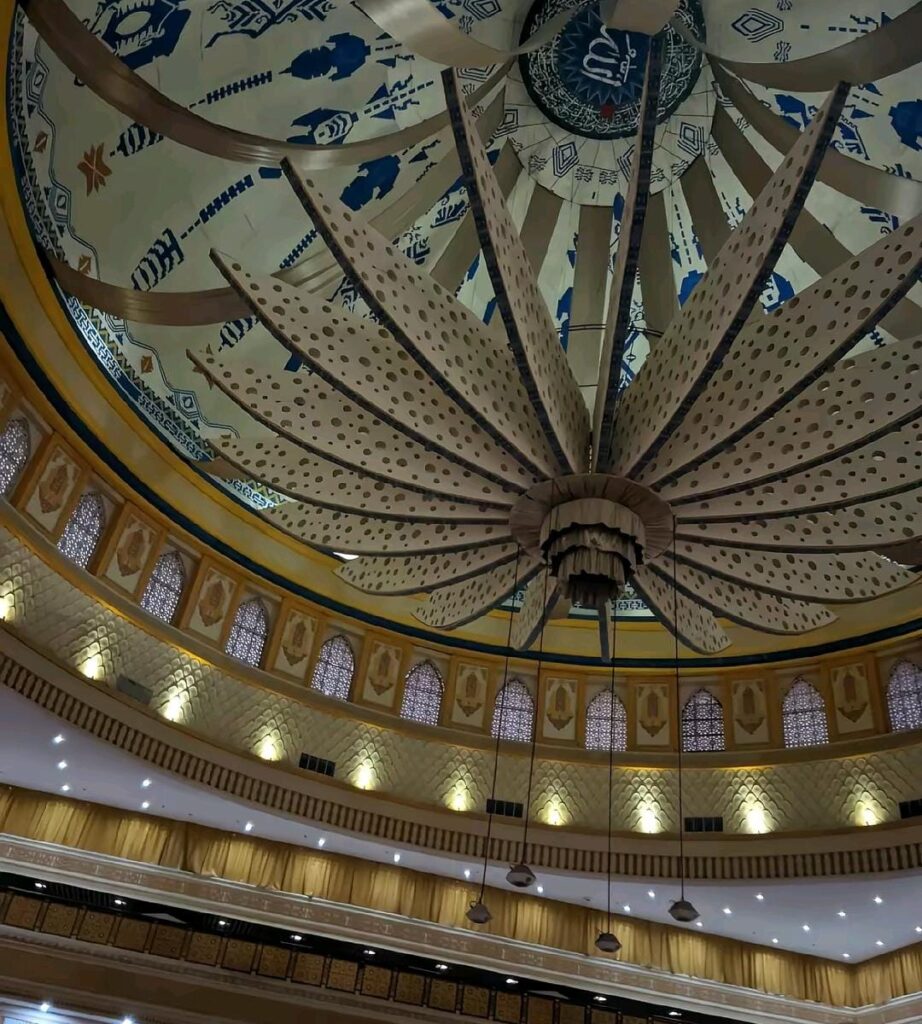 motif geometris, kaligrafi indah di dinding, serta paduan warna yang menenangkan.