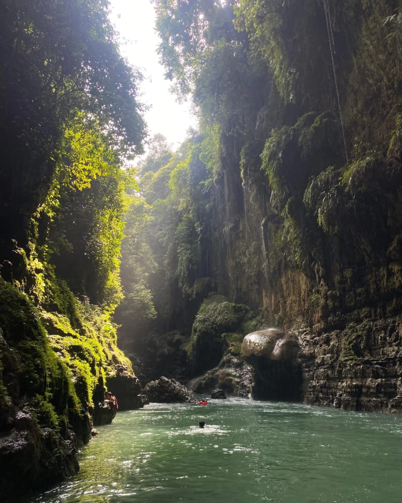 Selain menyusuri sungai, ada banyak spot yang cocok untuk berenang santai. Airnya segar, jernih, dan berwarna hijau toska alami, membuat siapa pun ingin segera menceburkan diri. Kamu bisa berenang sambil menikmati suasana tenang, atau sekadar berendam melepas penat. -